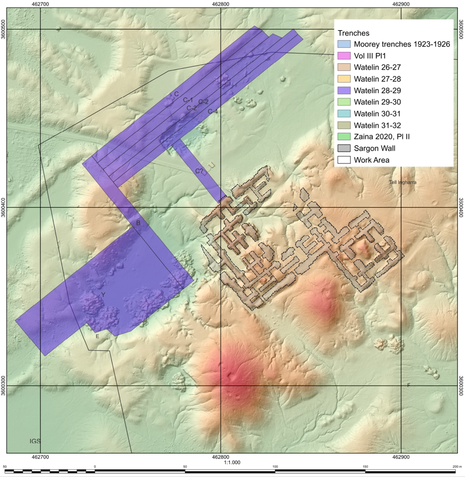 [/kish/images/chariots-fig1-large.jpg]1. Map of the OFME trenches made in 1928-1929, indicating Trench Y (2024). Source: State Board of Antiquities and Heritage, Iraq
