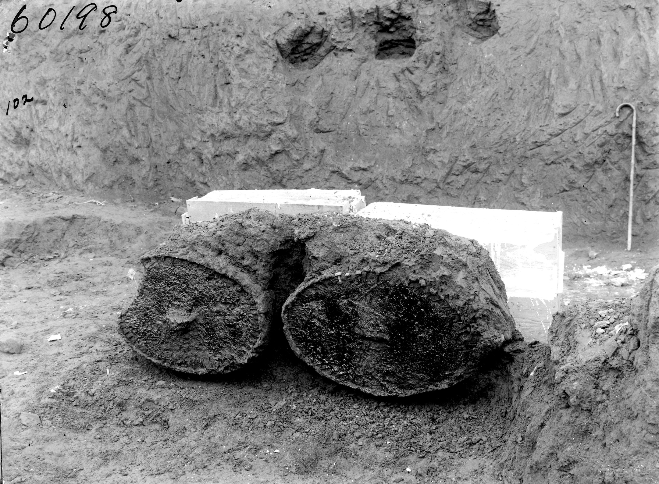 [/kish/images/chariots-fig4-large.jpg]4. "Two wheels of a four-wheeled chariot packed in plaster boxes for shipment" (undated). Source: OFME Photo Album, ANT 140B, p.117, negative number 60198