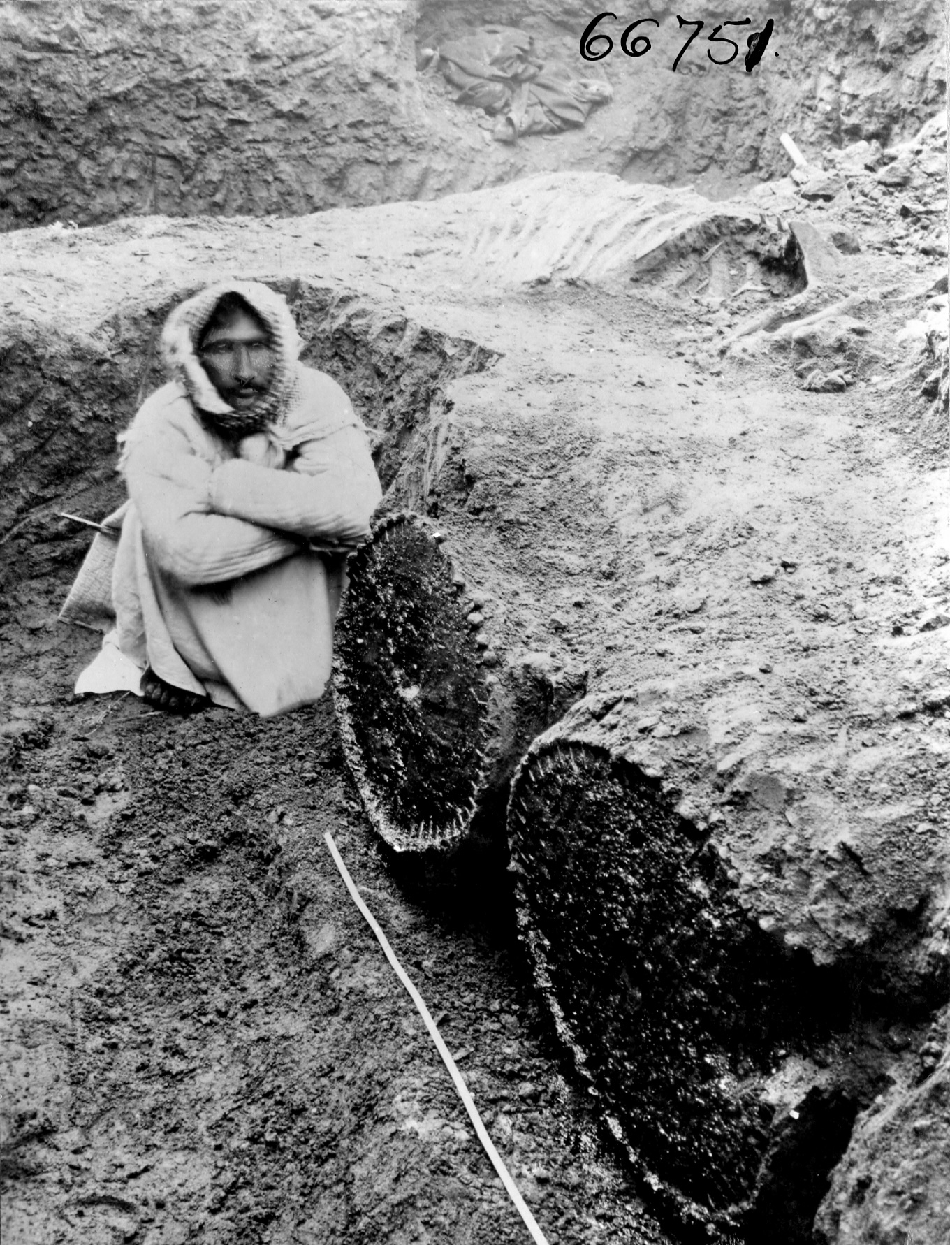 As with many of the discoveries made by the OFME between 1923-1933, "the cart-burials were so ill-recorded as to remain forever matter for debate" (Moorey 1978: 103). Mackay recorded 154 burials, 16 associated with animals, but many more graves were discovered and not described (Gibson 1972: 79). The bodies of the riders were found lying next to their carts, light vehicles presumably used for hunting and fighting. It is assumed that only privileged men were buried with their vehicle (Moorey 1978: 104).